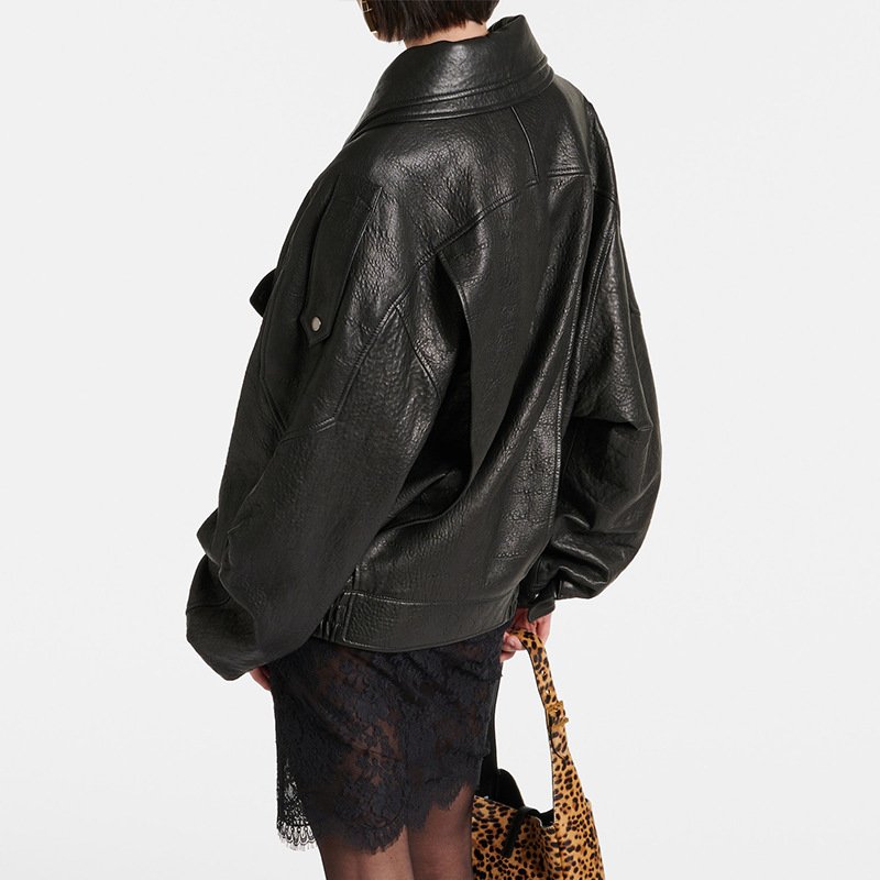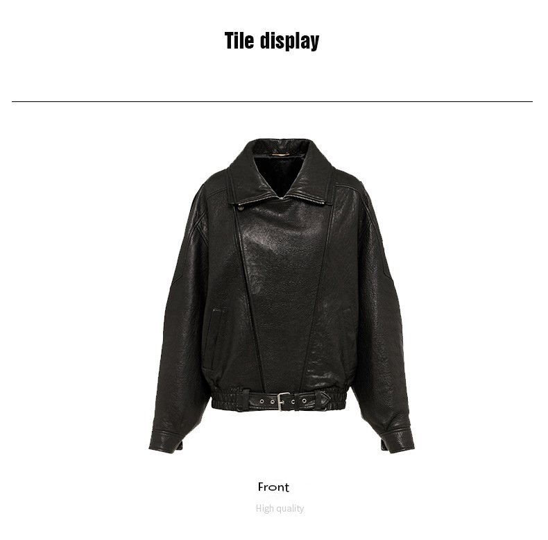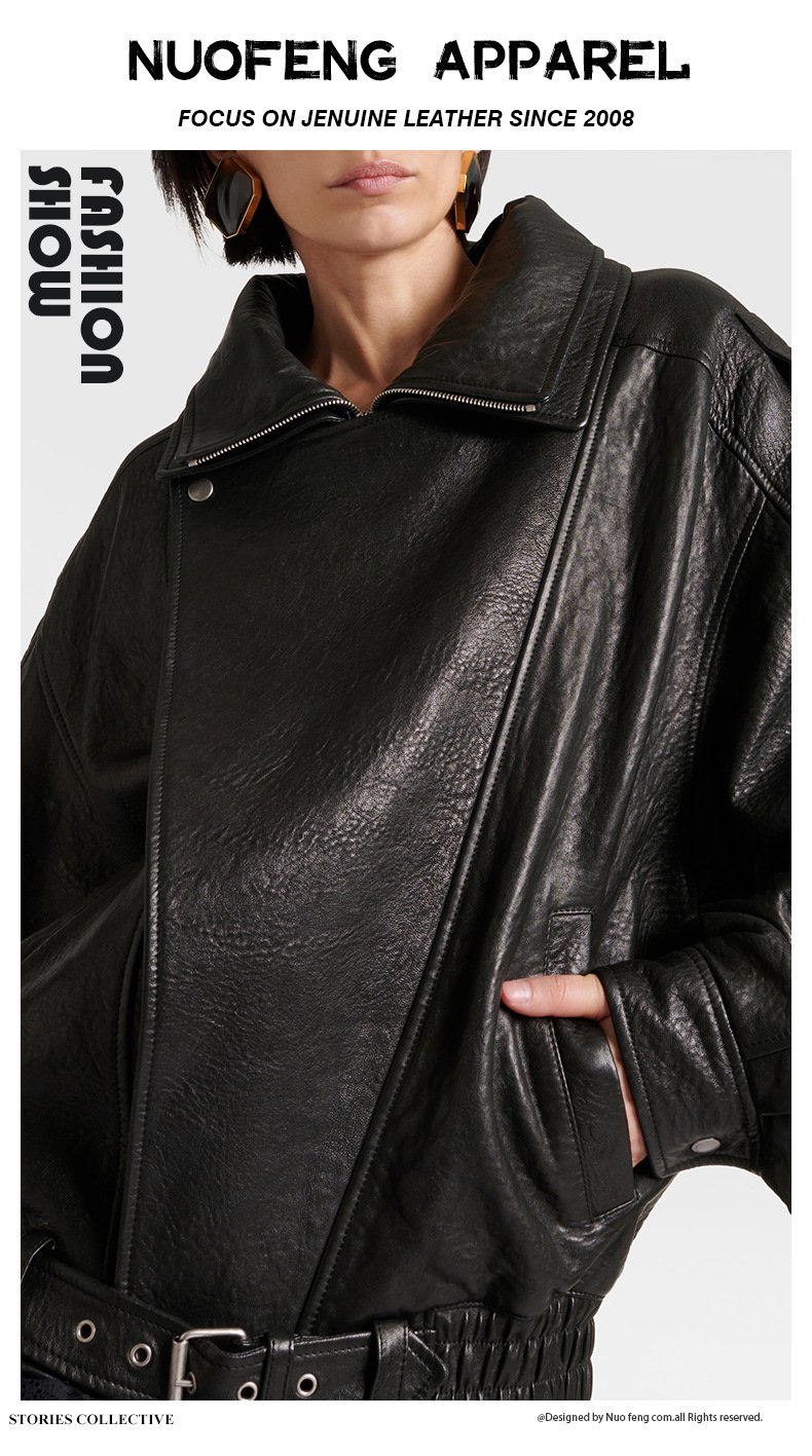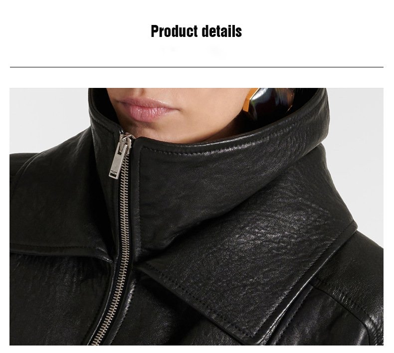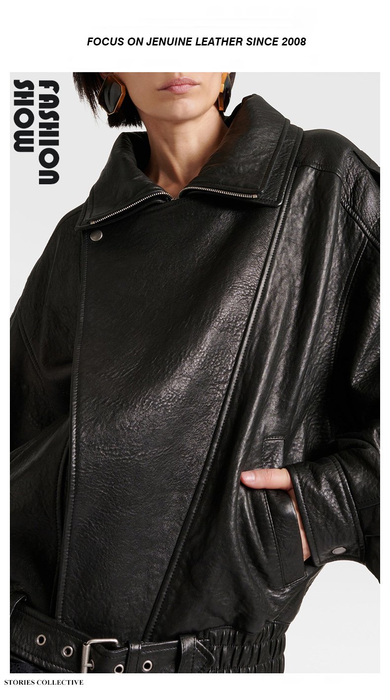 2025 autumn new heavy sheepskin retro neutral stand collar motorcycle leather jacket genuine leather jacket tops for women