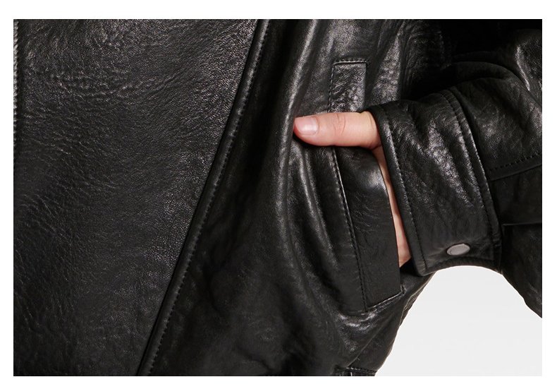 Plus size genuine leather flight suit jacket for men with lapel and thick foam leather New Zealand sheepskin hip-hop leather jacket