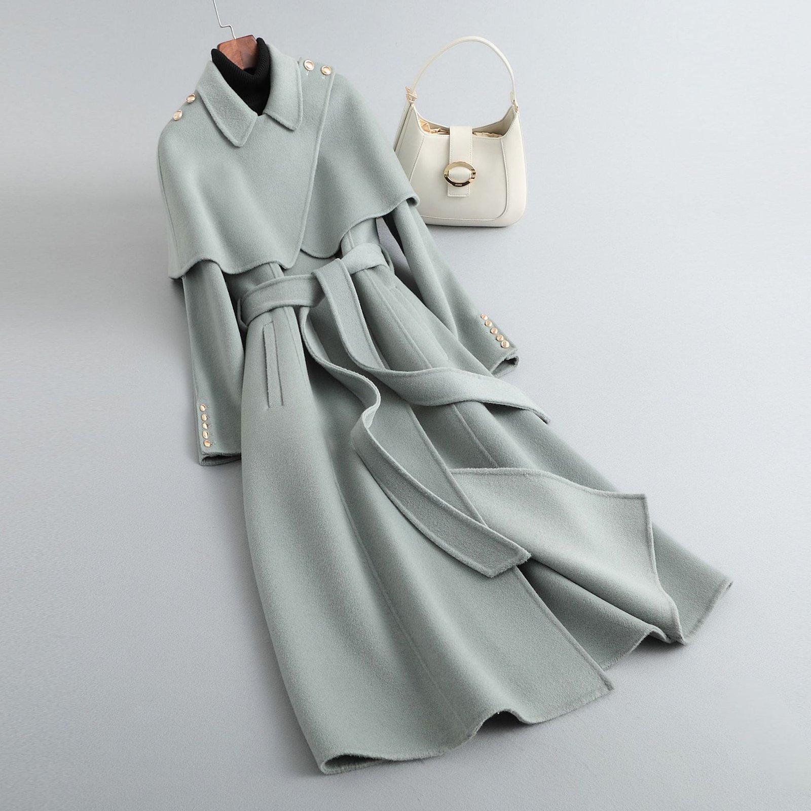 2025 autumn and winter new fashion cape woven wool coat women’s skirt mid-length coat