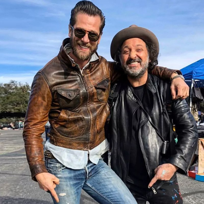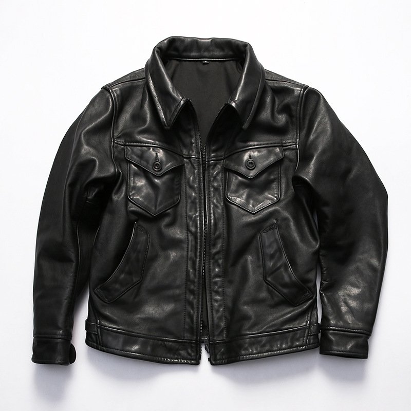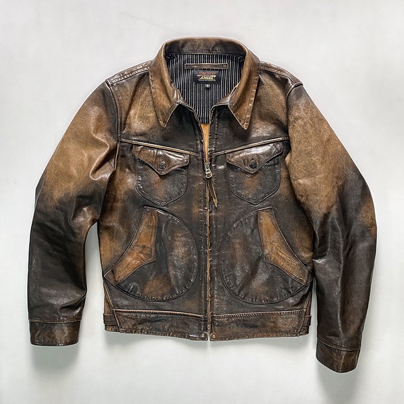 Replica RL Mendoza genuine leather jacket men’s lapel multi-pocket washed retro distressed American yellow cowhide leather jacket